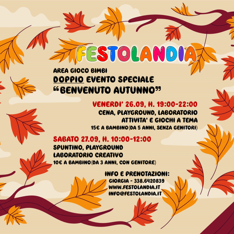 Ce n’è proprio per tutti i gusti…vi aspettiamo allora numerosi per salutare insieme l’arrivo dell’autunno nel modo più divertente e allegro possibile, come solo a Festolandia puoi fare!